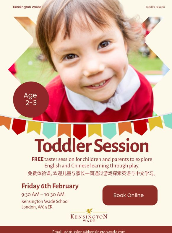 Kensington Wade School is proud to offer free Toddler Taster Sessions: Join FREE taster session for children and parents to explore English and Chinese learning through play!
